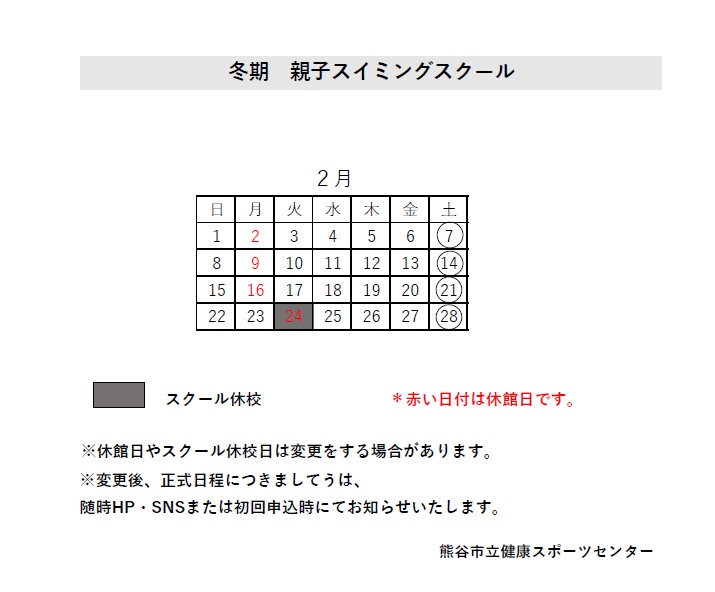 令和7年度 冬期-2月-:親子スイミングスクール