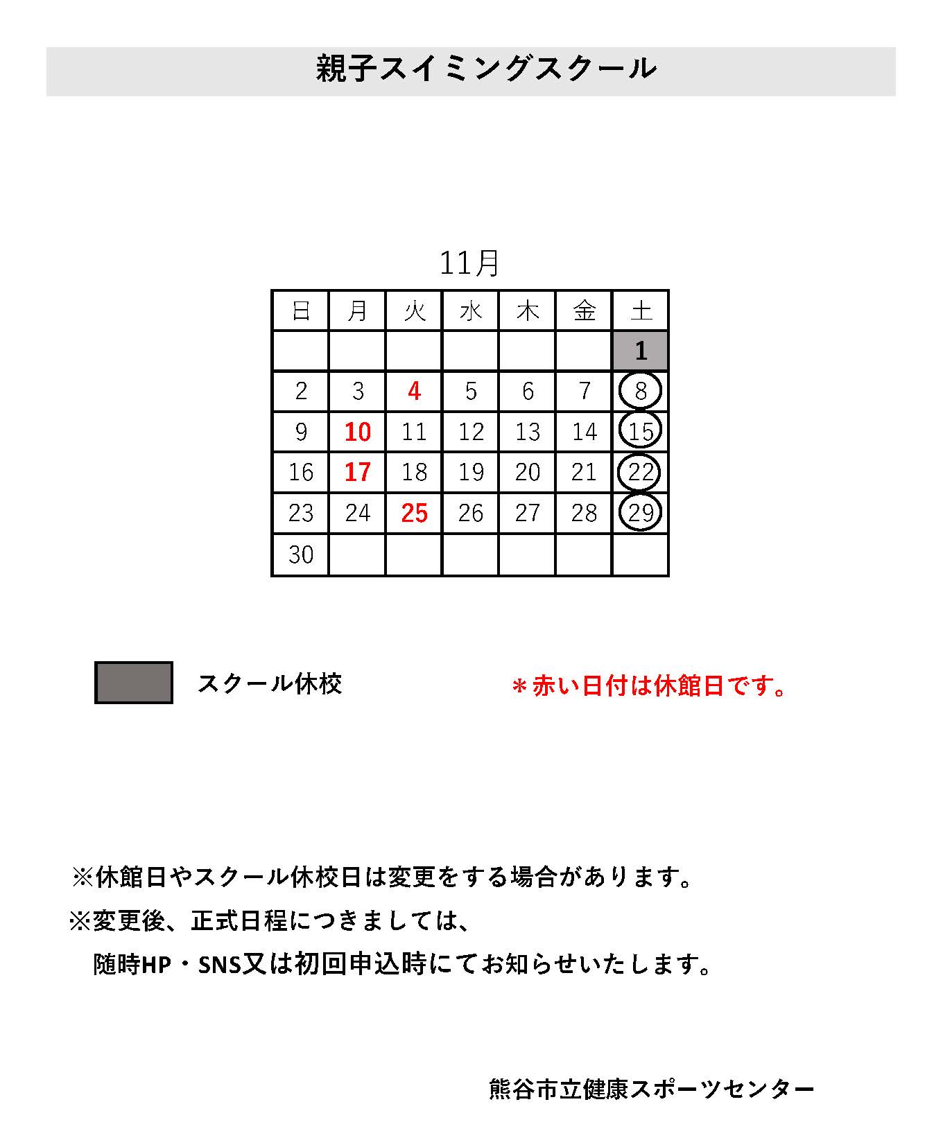 R7 秋期:親子スイミングスクール-11月-